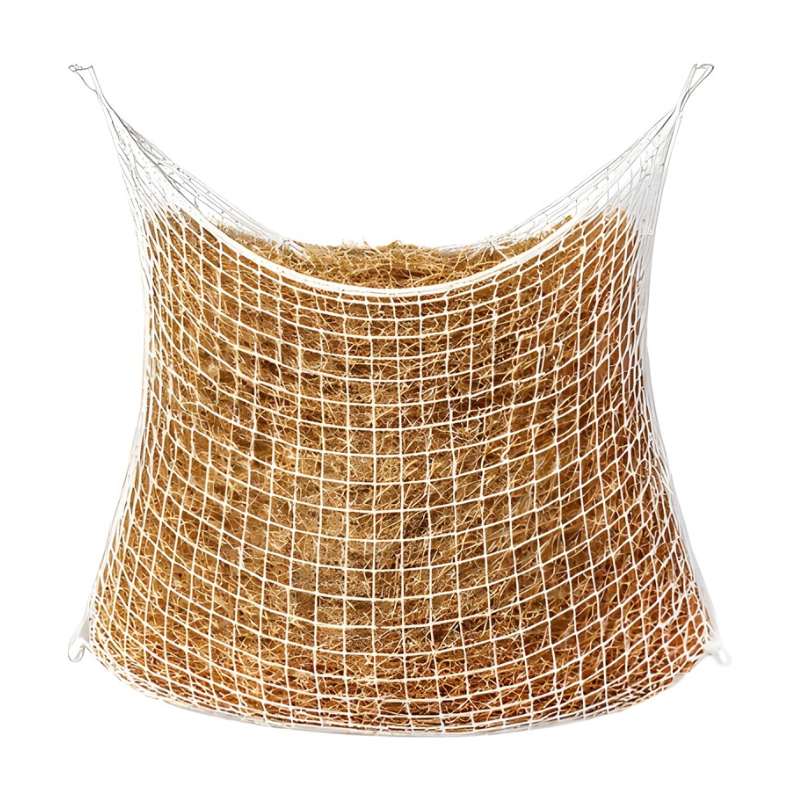 Produkt został wykonany z mocnego poliestru, dlatego świetnie sprawdza się przy intensywnym użytkowaniu. Bezwęzłowa konstrukcja jest bezpieczna dla pyska konia i jednocześnie bardziej komfortowa podczas pobierania paszy. Dzięki temu siatka nadaje się zarówno do codziennego stosowania w boksie, jak i podczas transportu.