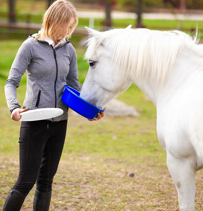 Możesz używać jej do podawania paszy, dodatków żywieniowych lub wody. Dzięki temu jest to uniwersalne rozwiązanie do codziennej opieki nad koniem.