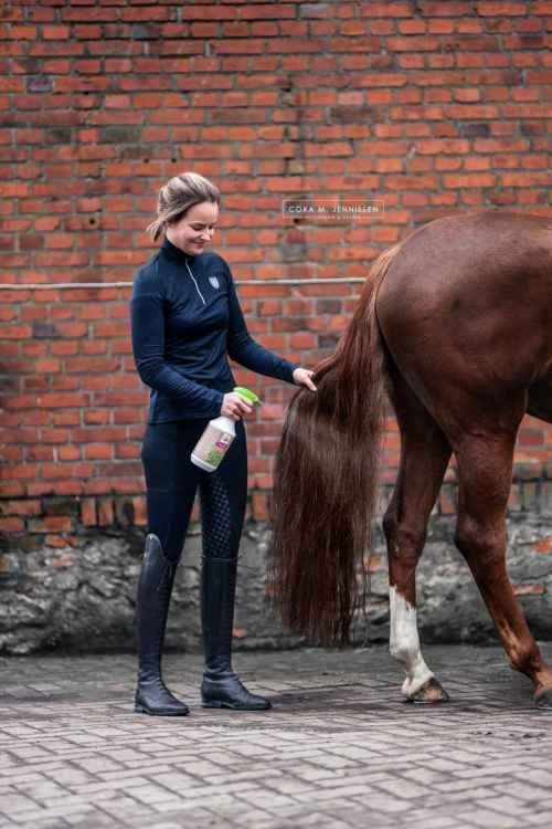 Odżywkę należy rozpylić na suchą lub lekko wilgotną grzywę i ogon. Następnie delikatnie rozczesać włosie, aby równomiernie rozprowadzić preparat. Produkt można stosować regularnie, ponieważ nie skleja i nie obciąża włosia.