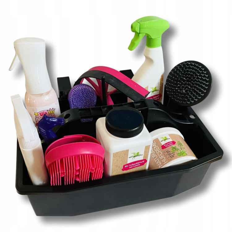 Produkt sprawdzi się zarówno do przechowywania szczotek, jak i kosmetyków pielęgnacyjnych czy drobnych akcesoriów jeździeckich. Dlatego jest idealnym rozwiązaniem dla właścicieli koni, jeźdźców oraz osób pracujących w stajni.