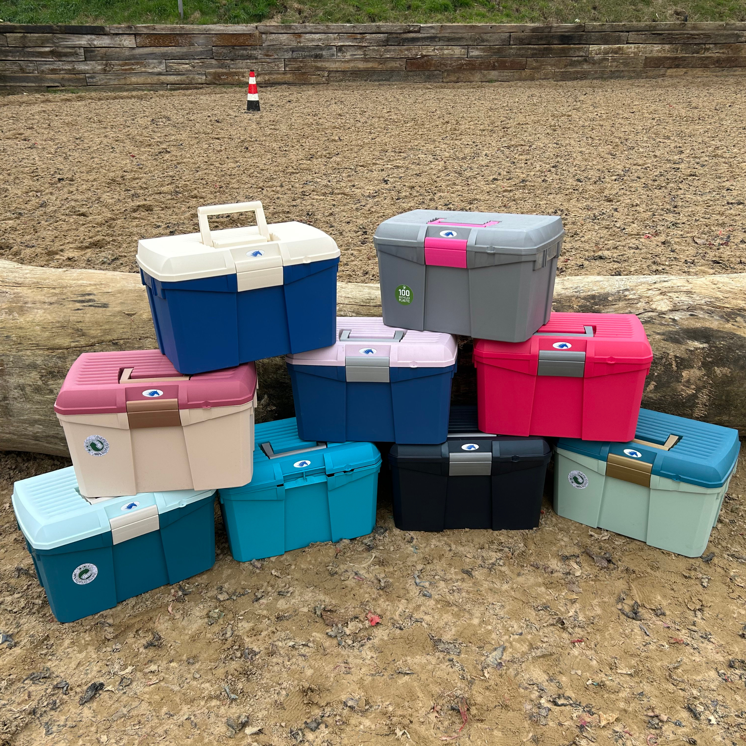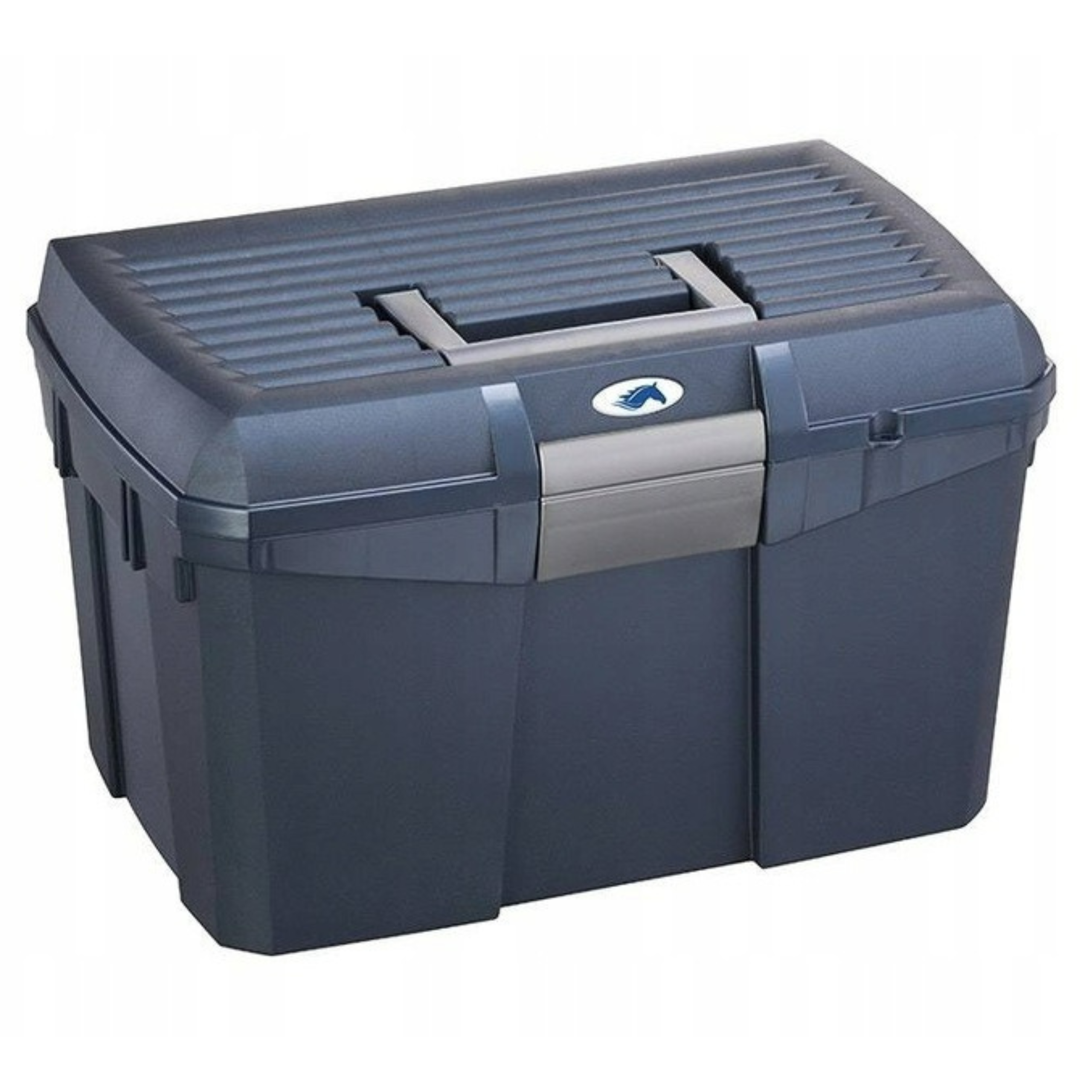 Skrzynka na szczotki dla konia granatowa została wykonana z wysokiej jakości plastiku pochodzącego z recyklingu. Materiał jest trwały, odporny na uszkodzenia oraz łatwy do utrzymania w czystości.