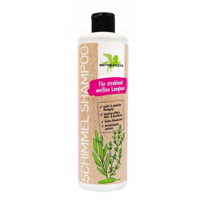 Szampon dla koni białych, siwych i jasnych to specjalistyczny produkt pielęgnacyjny, stworzony z myślą o utrzymaniu czystości i estetycznego wyglądu jasnej sierści. Perłowa formuła pomaga usuwać zabrudzenia oraz podkreśla naturalny kolor włosa.