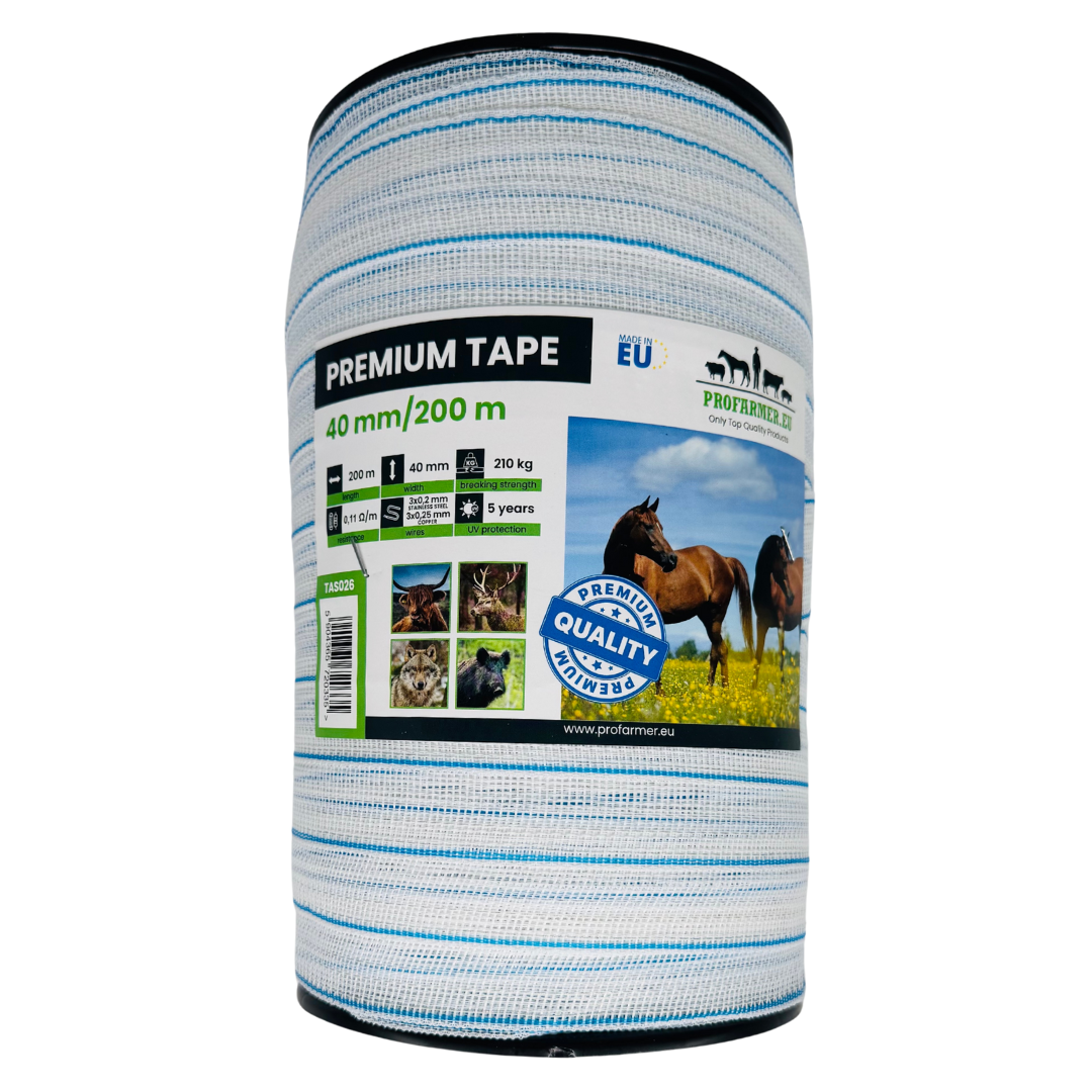 Taśma do pastucha elektrycznego PREMIUM 40 mm 200 m została zaprojektowana do budowy krótkich, średnich, długich oraz bardzo długich ogrodzeń elektrycznych, nawet do 18 km. Dzięki połączeniu grubych drutów miedzianych oraz stalowych ocynkowanych taśma zapewnia bardzo wysoką przewodność. Spadek napięcia na końcu linii pozostaje minimalny.