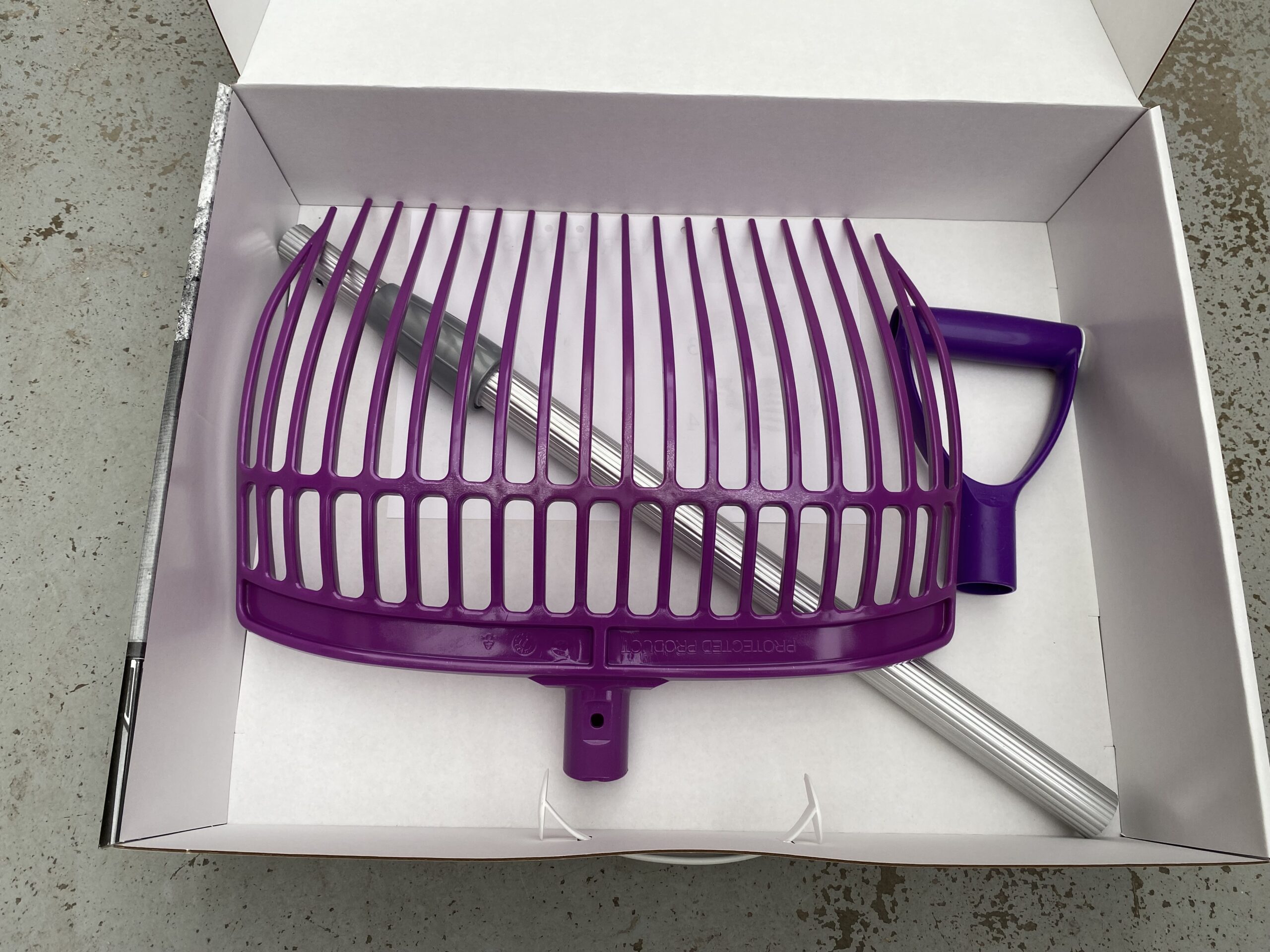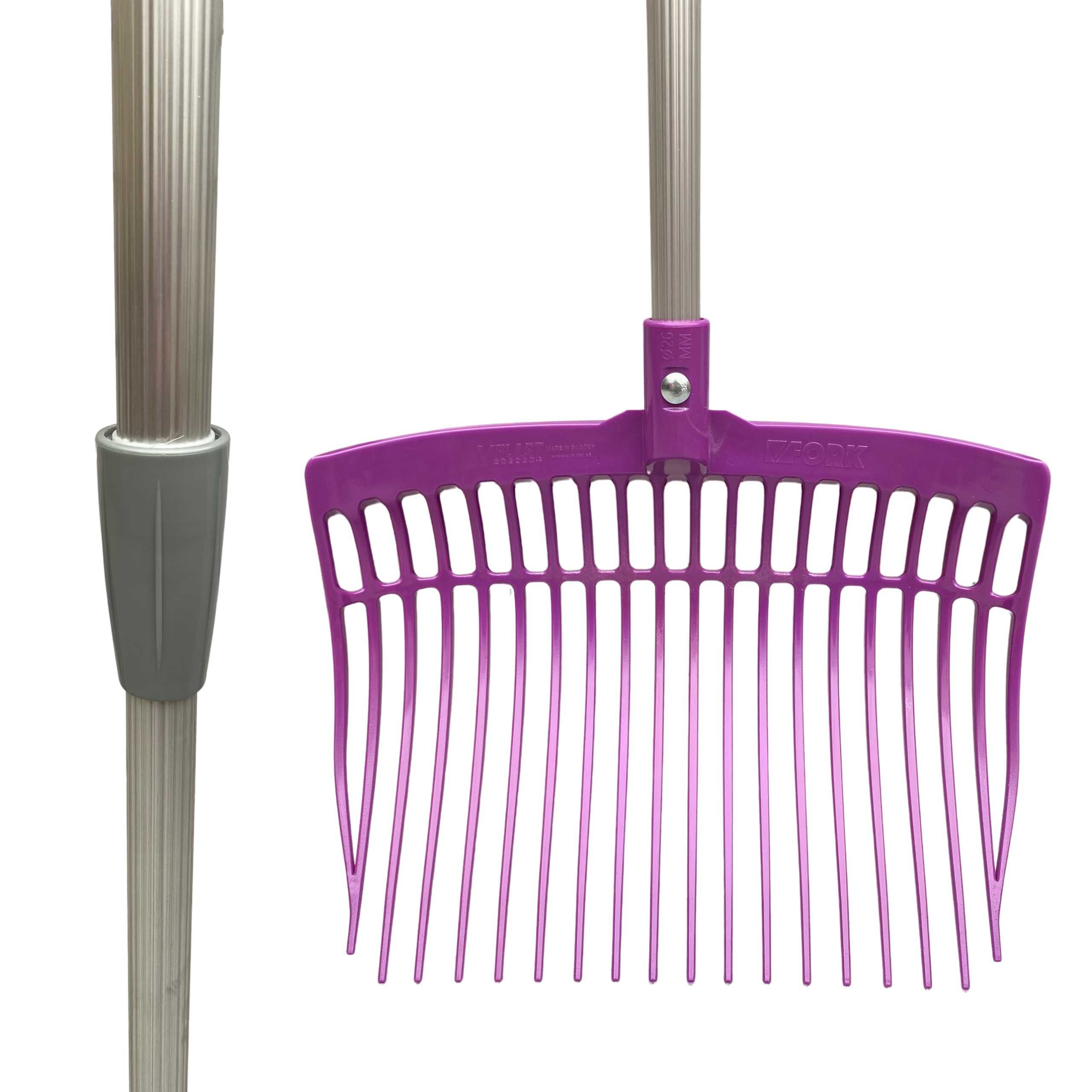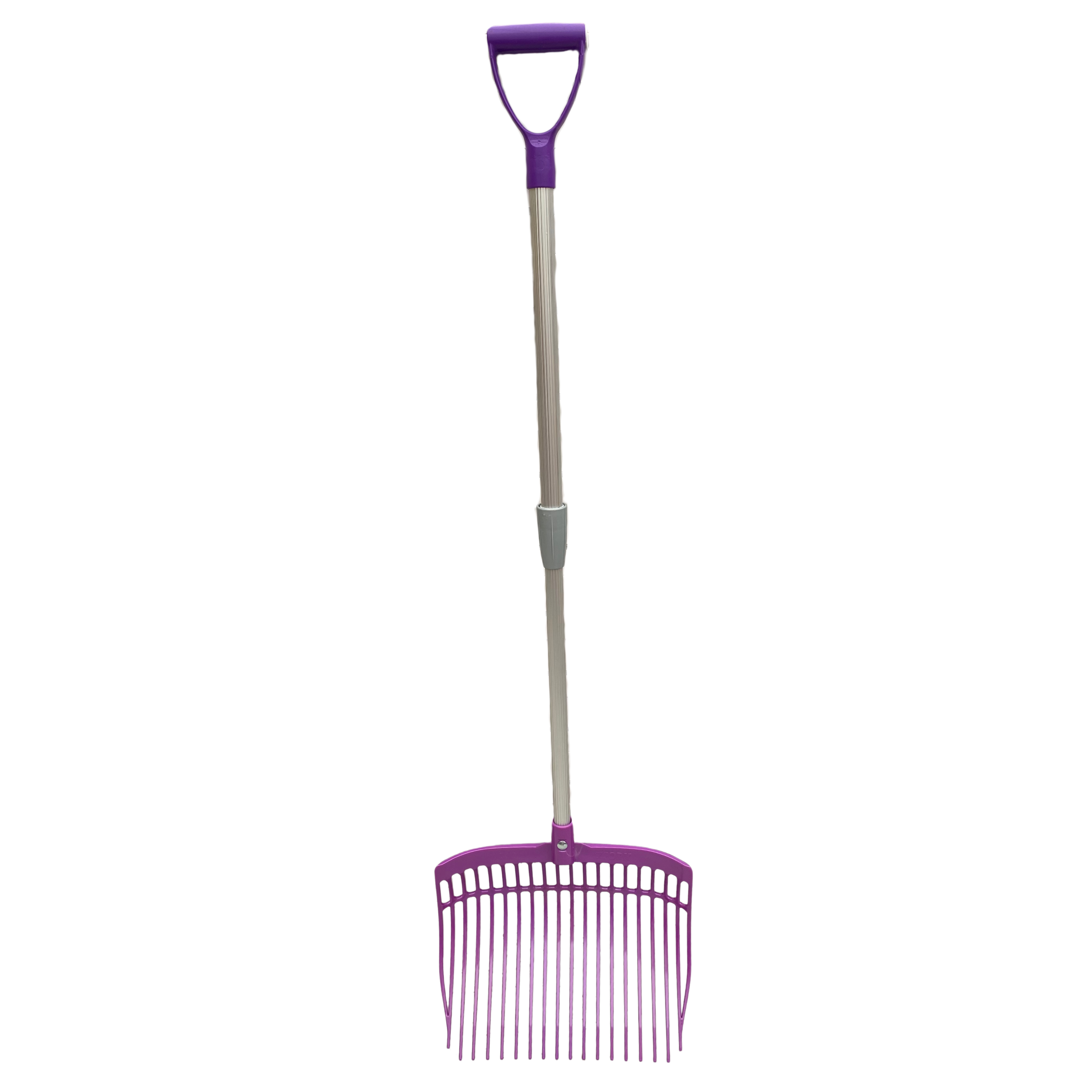 Widły plastikowe z trzonkiem teleskopowym do sprzątania boksu dla koni – fioletowe